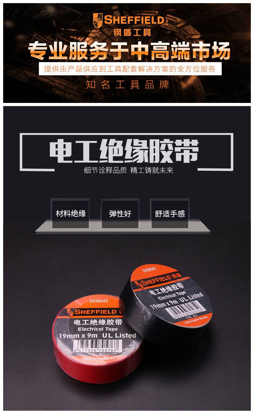 SHEFFIELD(钢盾) 电工绝缘胶带(红) 防水PVC胶带 S038043